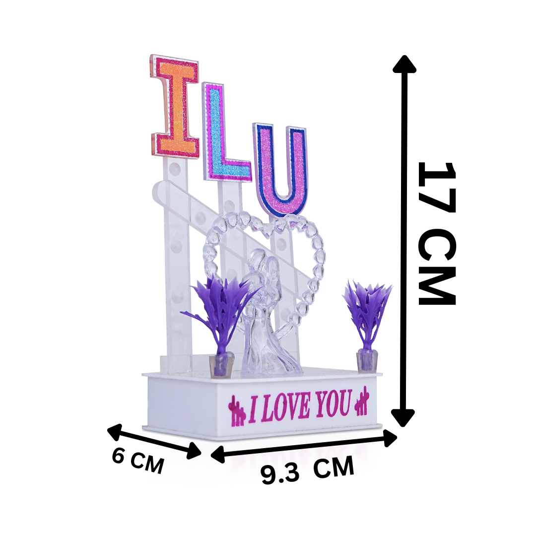 The Awesome Craft ILU LOVE Crystal Showpiece with LED Lights is a perfect romantic gift for expressing your love and appreciation. This exquisite showpiece features a crystal figurine of a couple in an affectionate embrace, with the letters "ILU" (an abbreviation for "I Love You") carved into the base. When turned on, the showpiece emits a soft, warm LED lighting effect that creates a romantic atmosphere. The energy-efficient LED lights are long-lasting, ensuring you can enjoy the showpiece for an extended period. This medium-sized statue is perfect for gifting to your girlfriend, boyfriend, husband, or as a home decor item to add a touch of romance to your living space. The showpiece's high-quality materials and meticulous attention to detail in its design and construction make it both durable and visually appealing. Whether you're celebrating Valentine's Day, an anniversary, or simply expressing your love, the Awesome Craft ILU LOVE Crystal Showpiece with LED Lights is sure to make a lasting impression on your loved one.