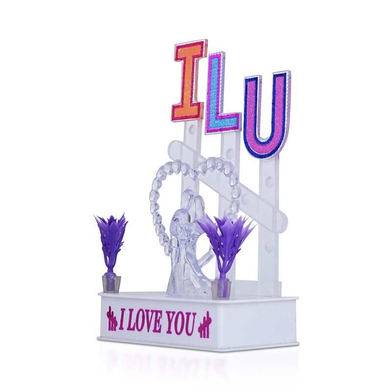 The Awesome Craft ILU LOVE Crystal Showpiece with LED Lights is a perfect romantic gift for expressing your love and appreciation. This exquisite showpiece features a crystal figurine of a couple in an affectionate embrace, with the letters "ILU" (an abbreviation for "I Love You") carved into the base. When turned on, the showpiece emits a soft, warm LED lighting effect that creates a romantic atmosphere. The energy-efficient LED lights are long-lasting, ensuring you can enjoy the showpiece for an extended period. This medium-sized statue is perfect for gifting to your girlfriend, boyfriend, husband, or as a home decor item to add a touch of romance to your living space. The showpiece's high-quality materials and meticulous attention to detail in its design and construction make it both durable and visually appealing. Whether you're celebrating Valentine's Day, an anniversary, or simply expressing your love, the Awesome Craft ILU LOVE Crystal Showpiece with LED Lights is sure to make a lasting impression on your loved one.